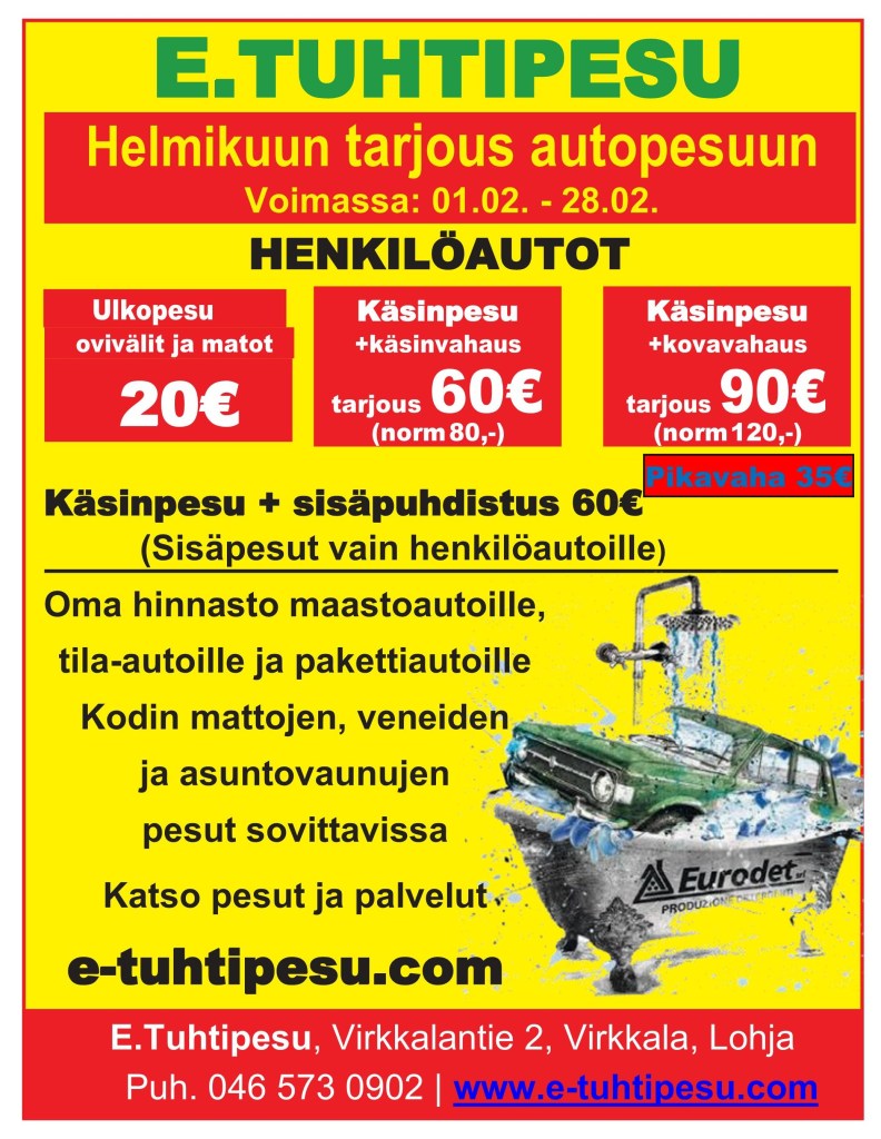Helmikuunautonpesuun 01.02 – 28.02.2026